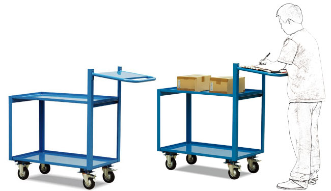 ● 采用優質鋼板制造,帶有寫字板使用方便 ● 適用于倉庫、生產車間、維修等工作場合 ● 其它尺寸可按要求定做 ● 兩個萬向角輪帶剎車,兩個定向輪,材質:橡膠輪